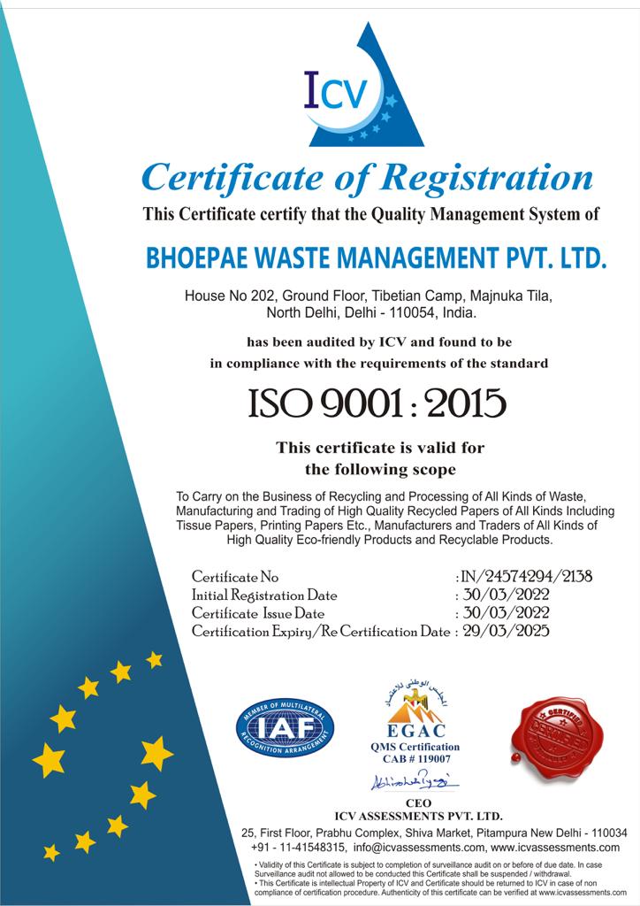 At Bhoepae Waste Management we aspire to make products which are high quality, cost-effective and serve the needs of the consumer and the allied industries. While doing this we take great care that we keep the atmosphere and mother earth fully sustainable. We maintain high standards of manufacturing efficiency and observe strictest quality control measures so that the product that leaves the factory is of the desired quality for its end-use